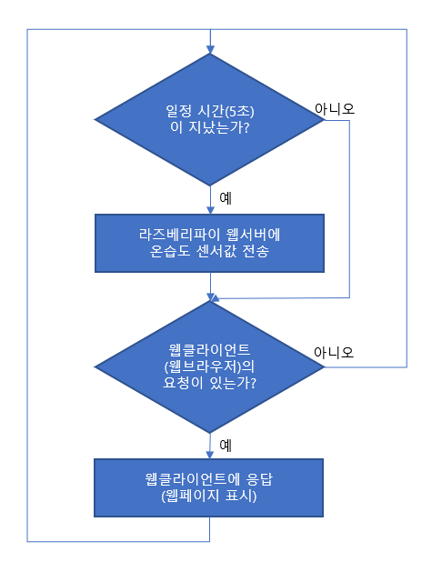 - NodeMCU 보드는 웹서버(웹브라우저 기준)이자 웹클라이언트(라즈베리파이 기준)