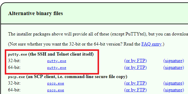 Putty 프로그램 홈페이지에 접속하여 스크롤을 내리다 보면 아래와 같은 위치에서 본인의 OS에 맞게 골라 다운로드하여 줍니다.