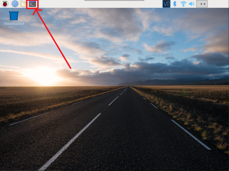 Desktop 버전은 따로 로그인 과정 없이 바로 아래와 같은 화면이 뜨는데 이후 작업 과정은 Lite 버전을 기준으로 작성하였기에 이후 과정을 진행하기 위해서 사진에 빨간 버튼을 눌러 Lite 버전과 같은 터미널 창을 열어주어야 합니다.