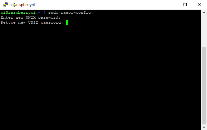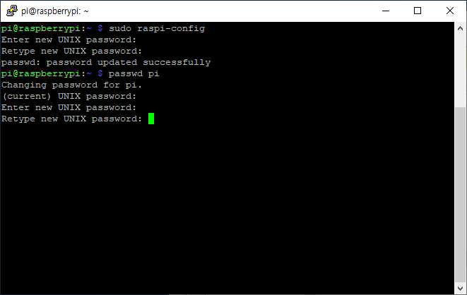 passwd pi 명령어로 pi 유저의 암호를 설정해줍니다.