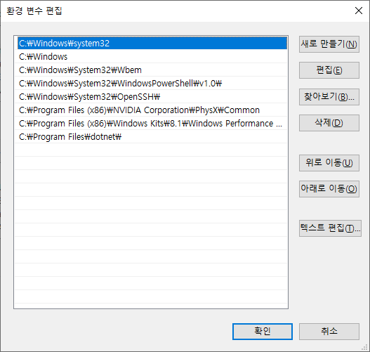 4. 환경변수에 등록된 C:\Windows\System32 경로에 존재
